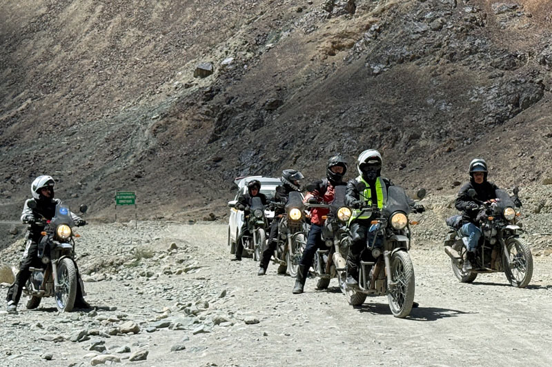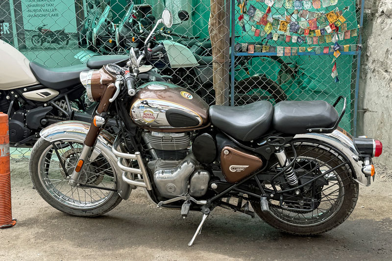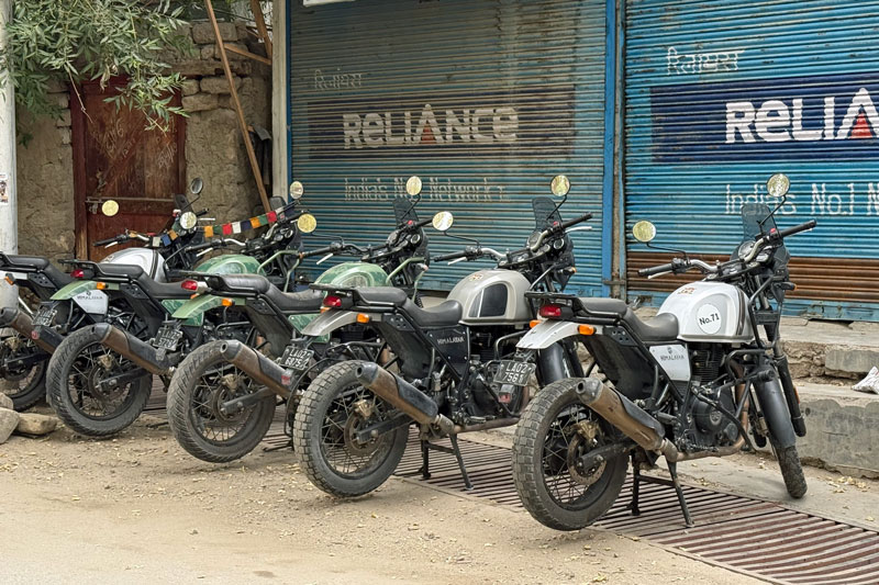 レーのレンタルバイクは圧倒的にシート高の高いヒマラヤンが多いです。実際走行しているのは8割がヒマラヤン。