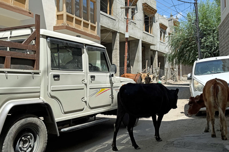特にレーの街は斜面にあり坂だらけ、凸凹で脚を延ばしてもそこに地面のないことが多い。